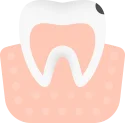 Смещаясь, зуб начинает притираться к соседним, повреждая эмаль — возникает кариес: