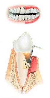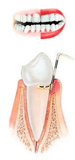 Убыль костной ткани распространяется на соседние зубы и их корни постепенно обнажаются!